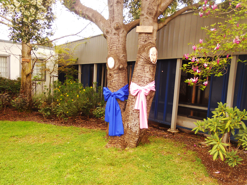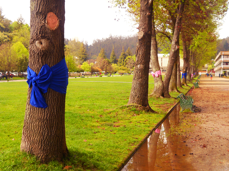 La actividad comenzó con la entrega de trípticos informativos, la decoración de los árboles del prado central con lazos rosados y azules, que identifican las enfermedades, y la inauguración (en el hall de la Facultad de Ciencias Químicas) de la exposición “Manos a la obra”.